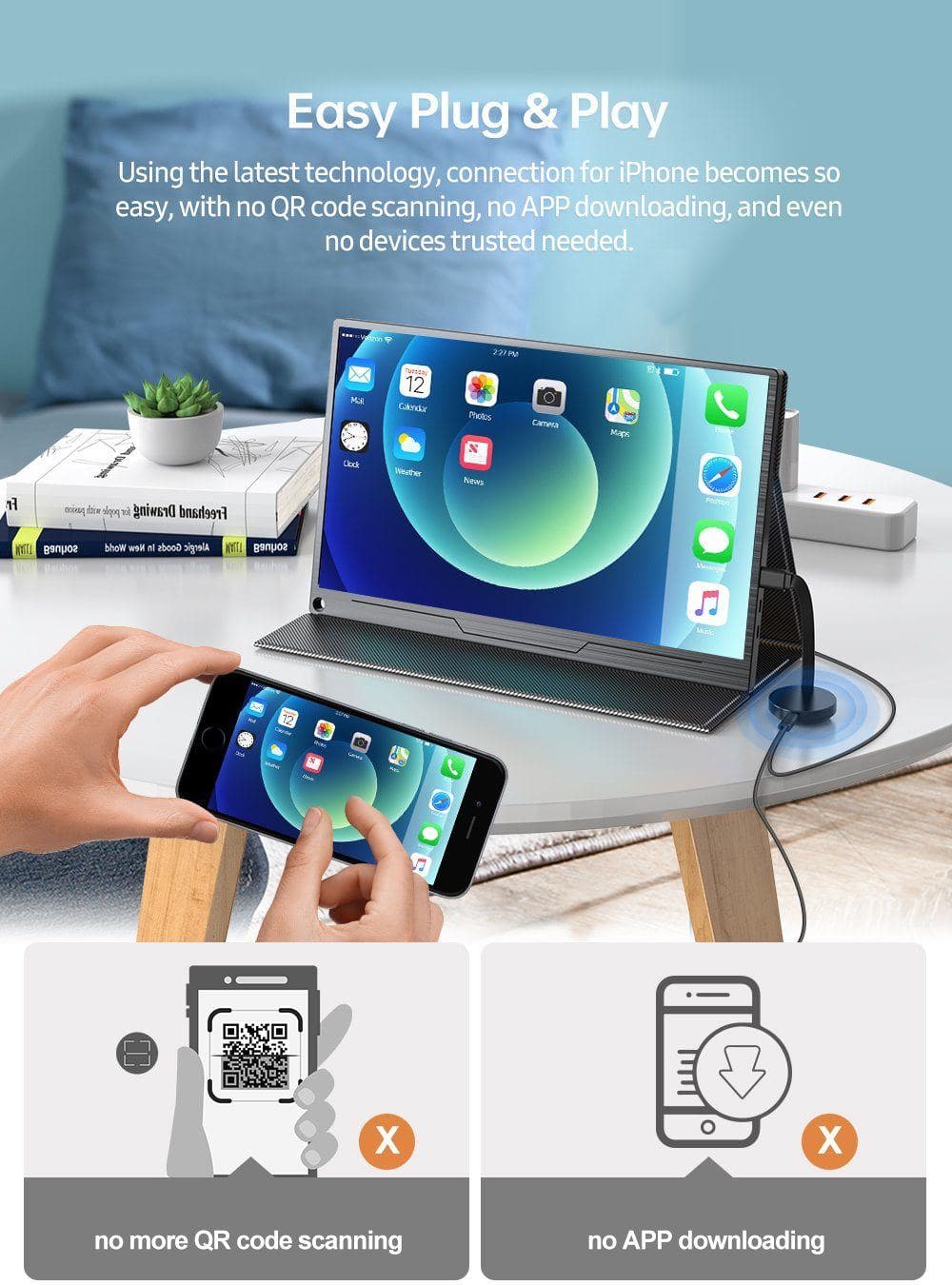 Der HDMI-Bildschirmadapter für Android und iPhone erweitert die Funktionen von Mobiltelefonen/Tablets erheblich und erfüllt so die Anforderungen der Benutzer an Großbildanzeige, geräteübergreifende Zusammenarbeit, Live-Streaming von Spielen usw. Er ist ein äußerst praktisches Hilfsmittel für Mobilgeräte. Er ist nicht auf einen Computer angewiesen, was die Flexibilität und Portabilität der Präsentation erheblich verbessert.